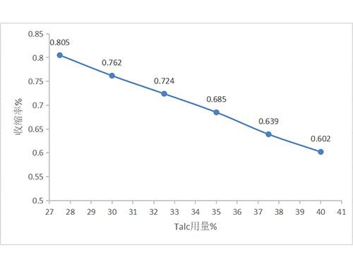 在傳統陶瓷坯體中,燒成收縮主要是因為高嶺石生成莫來石的反應引起的,這種收縮可達20%。而滑石粉在陶瓷坯體中的兩個反應前后的體積收縮較小,根據各礦物相的克分子體積值計算,前者收縮不到12%,后者收縮為4.8%。 從實驗結果中表明以固相反應的陶質和吸水率較高的陶瓷坯體中,滑石粉有利于減小陶瓷坯體的燒成收縮。換…