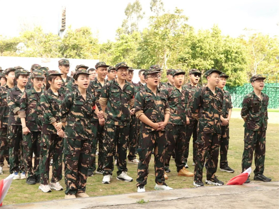 士兵突擊、火速變裝完,軍訓(xùn)的感覺一下就上來了。經(jīng)過簡單的桃花朵朵開環(huán)節(jié)、集合分組、起隊名、喊口號一系列操作直接讓我們從開始的拘謹(jǐn)變得士氣滿滿,各團隊就此組建完成。
