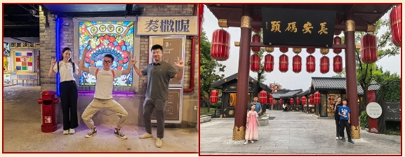 落地西安,便將這絕美夜景盡收眼底;回民街是西安美食的聚集地,烤羊肉串、肉夾饃、涼皮……各種小吃應有盡有,香氣四溢,讓人垂涎欲滴。腳步這下是挪也挪不動了,大家紛紛品嘗著這地道的美食,贊不絕口。