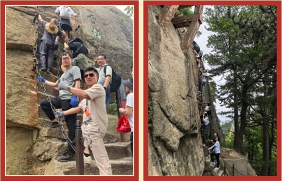 早餐后,大家乘車前往華山,在山清水秀、曲徑通幽的自然美景中到達“奇險天下第一山”的華山,大家乘坐太華索道直達華山最美山峰西峰后,拾級而上,輔之以鐵鏈,開啟登高之旅。