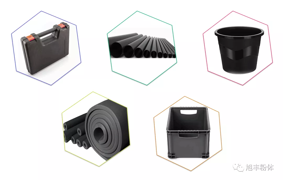 黑滑石在黑灰色橡膠、塑料制品中的應用,不僅起到普通滑石填充、增強、耐溫等作用,同時還可減少炭黑的用量,降低成本,如:HDPE雙壁波紋管、橡塑發泡、各類黑灰色塑料制品等。